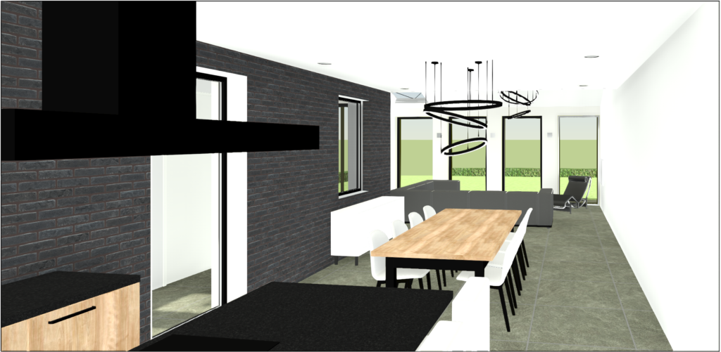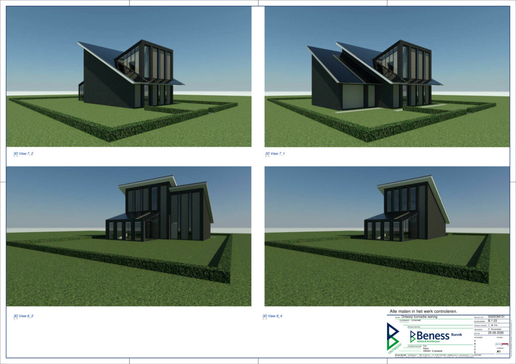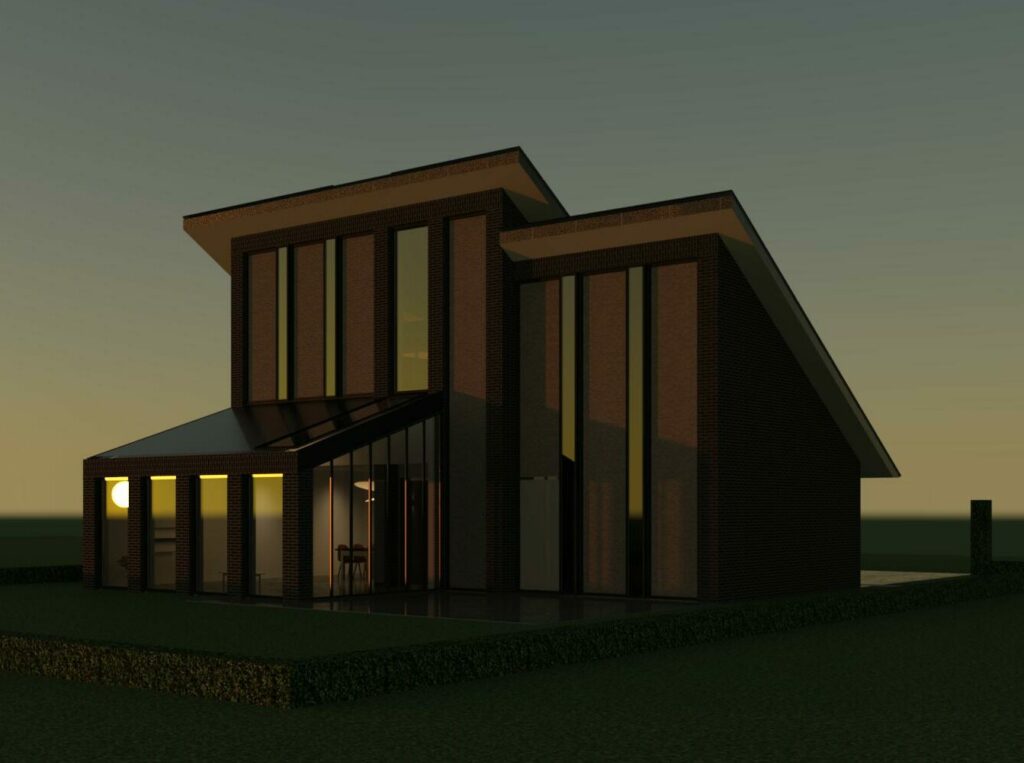 Eigenzinnig tijdloos ontwerp waarbij gebruikelijke bouwelementen verwisseld zijn. Zoals bijvoorbeeld de goot en nok in de massa, en ramen en penanten in de façades.